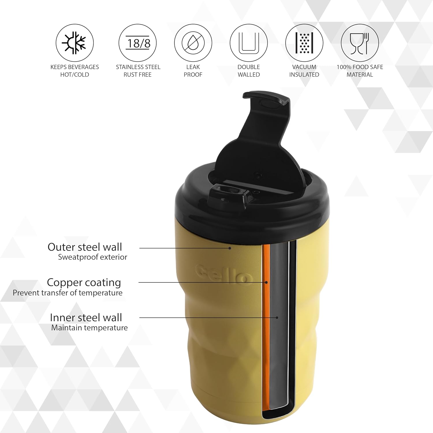 Enjoy your beverages on the go with the Cello Latte Flask, designed for both style and performance. Crafted from high-quality food-grade stainless steel, this flask keeps your drinks hot or cold for hours, making it perfect for daily use.